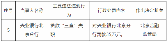 北京工业银行分支机构受到惩罚,贷款“三支支